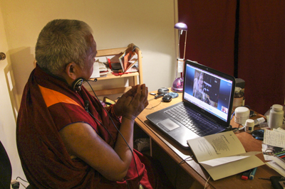 Rinpoche later gave Bob the bodhisattva vows over Skype, as you can see in the picture here. You can read more about Bob in the latest issue of Mandala Magazine, and on the Mandala website.