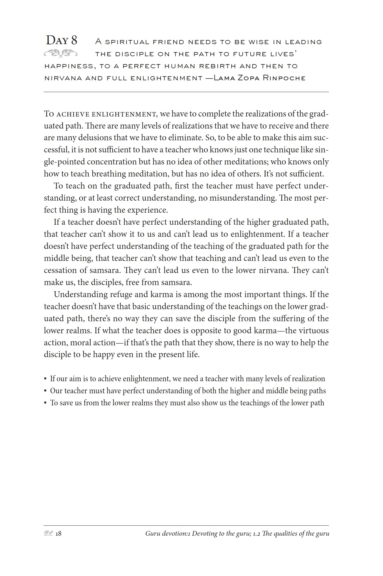We are already getting lots of positive feedback on our new book, Lama Zopa Rinpoche's letters to prisoners (see next section), and we are moving ahead well on our next book, Lamrim Year, a book of daily contemplations drawn from the teachings of Lama Yeshe and Lama Zopa Rinpoche and based on the lamrim outline. Here's a sample page. Coming soon!
