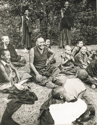 Lama Zopa Rinpoche and Lama Yeshe, Lake Arrowhead, 1975. Photo: Carol Royce-Wilder.
