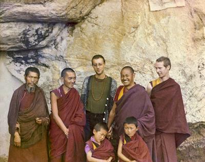 "After ten days in that area, where everywhere one looks there are prayer flags, mani stones, monasteries, and ascetics' caves, we returned to Kathmandu and heard about a meditation course in English and a Canadian nun at this place called Kopan. Roy and I decided to go there. Harvey went on to Australia.